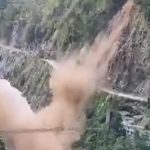 Part of the Badrinath Highway is damaged by a landslip, leaving tourists stranded.