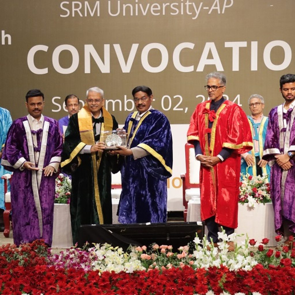 SRM University-AP hosted its prestigious 4th Convocation Ceremony on September 02, 2024, felicitating the graduates with their well-earned degrees for scholastic excellence. The monumental event was graced by the honourable presence of Chief Guest Padma Bhushan Senapathy Kris Gopalakrishnan, Chairman-Axilor Ventures and Co-founder of Infosys; Guest of Honour Mr Rohit Kapoor, Chief Executive Officer, Food Marketplace, Swiggy; Founder Chancellor of SRM Group of Institutions Dr T R Paarivendhar; Pro-Chancellor of SRM University-AP Dr P Sathyanarayanan; Vice Chancellor Prof. Manoj K Arora, Registrar Dr R Premkumar; Dean-Academic Affairs Dr Vinayak Kalluri; Other dignitaries, Faculty, staff and parents of the graduating batch. 1,018 graduates, including 24 PhD scholars, were conferred their degrees on this momentous occasion, and 18 Gold Medalists, 5 Silver Medalists, and 5 Bronze Medalists were recognised for their outstanding achievements.