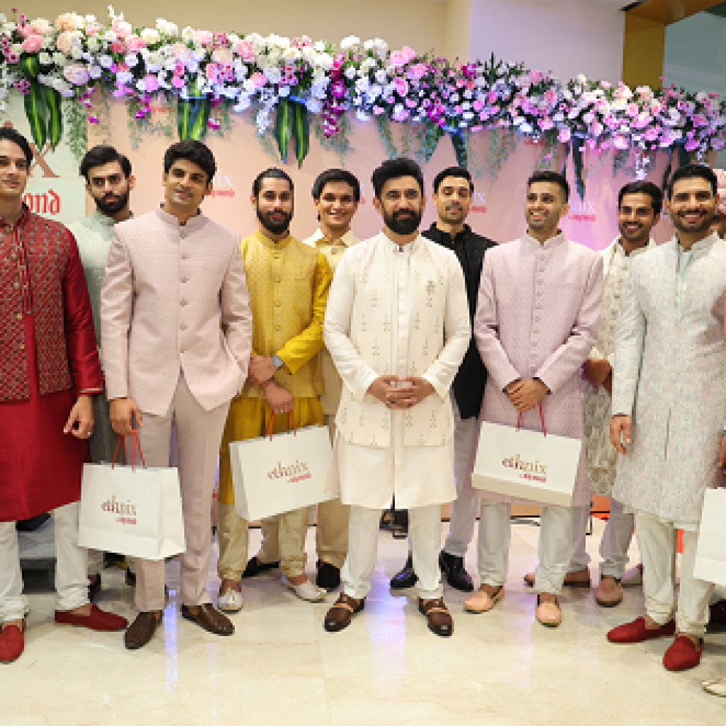 The grand launch was graced by acclaimed actor Amit Sadh (known for his roles in Breathe and Kai Po Che), who inaugurated the store and joined the Raymond leadership team for an exclusive walkthrough. Amit was accompanied by 18 models in ethnic ensembles, creating a striking visual moment that set the tone for the festive season. A soft pink embroidered Indo-Western ensemble from the Cocktail Collection, styled on Amit Sadh, added to the grandeur of the evening.