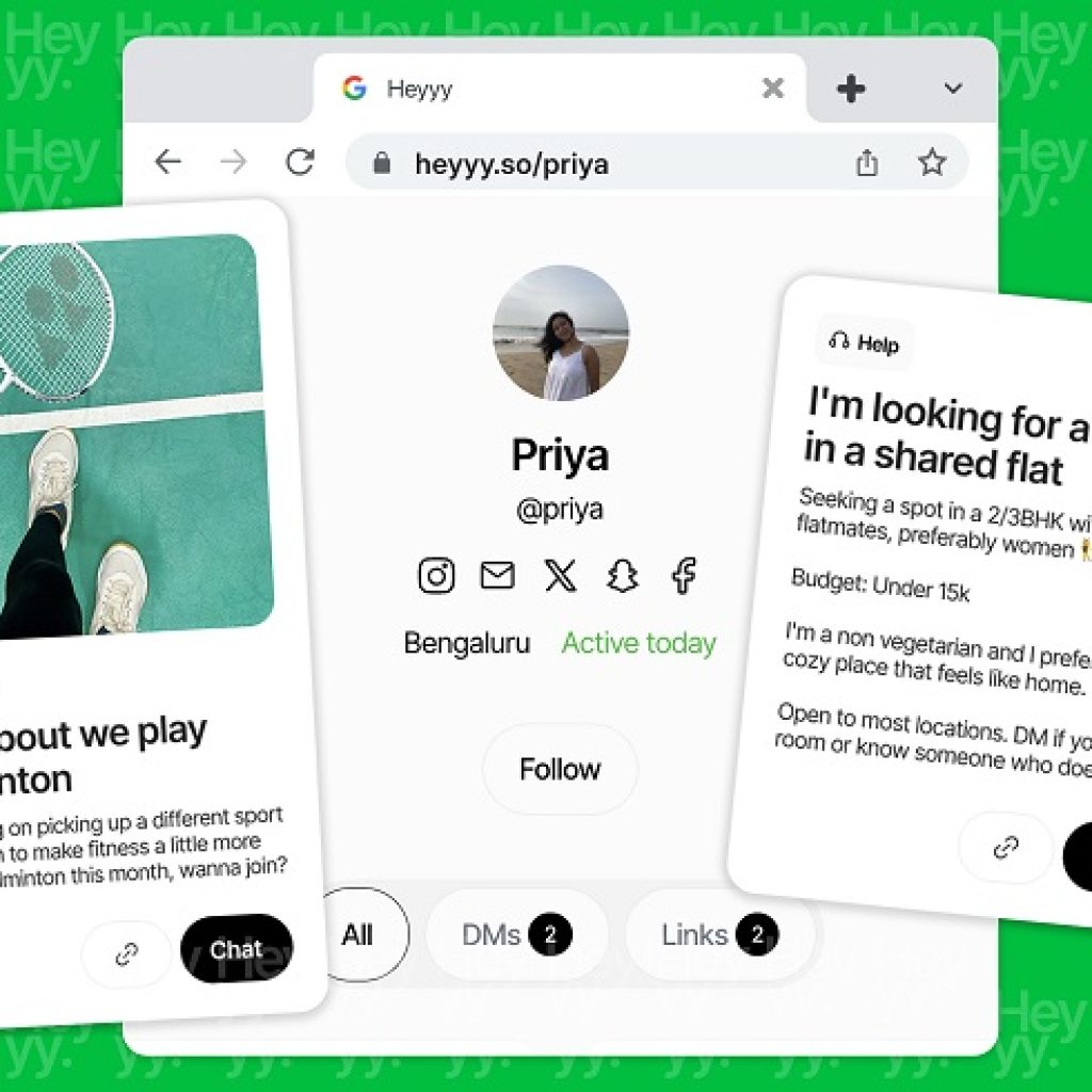 Founded by Able Joseph, the creator of Aisle – India’s leading dating app later acquired by InfoEdge, designed Heyyy to help users turn their online presence into meaningful opportunities. Whether you are looking for a roommate, co-founder, collaborators, or simply sharing passion projects, Heyyy bridges the gap between visibility and genuine connection.