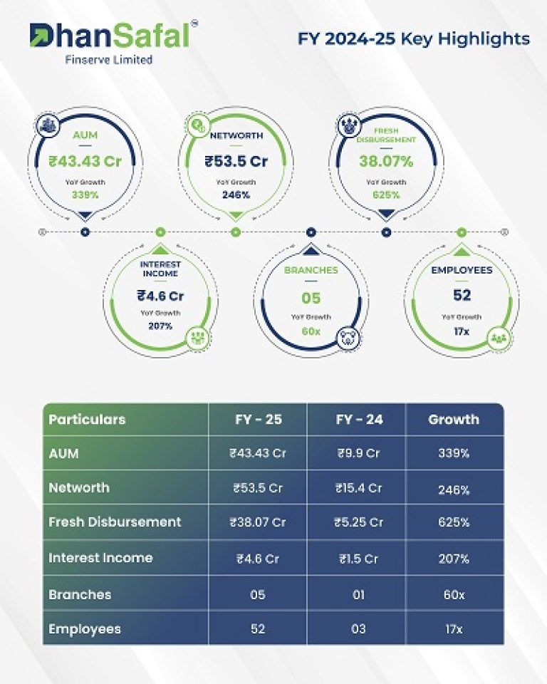 DhanSafal Finserve Limited Reports Strong Retail MSME Lending Growth, achieves 339 percent AUM Growth and Expands Geographical Footprint