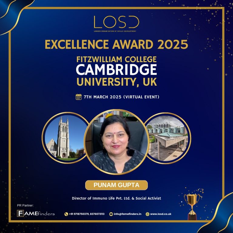Punam Gupta Invited to Excellence Award 2025 at Fitzwilliam College, Cambridge University, UK March 1, 2025