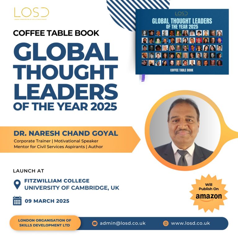 Dr. Naresh Chand Goyal to be Honored in the Prestigious ‘Global Thought Leaders of the Year 2025’ Coffee Table Book February 19, 2025