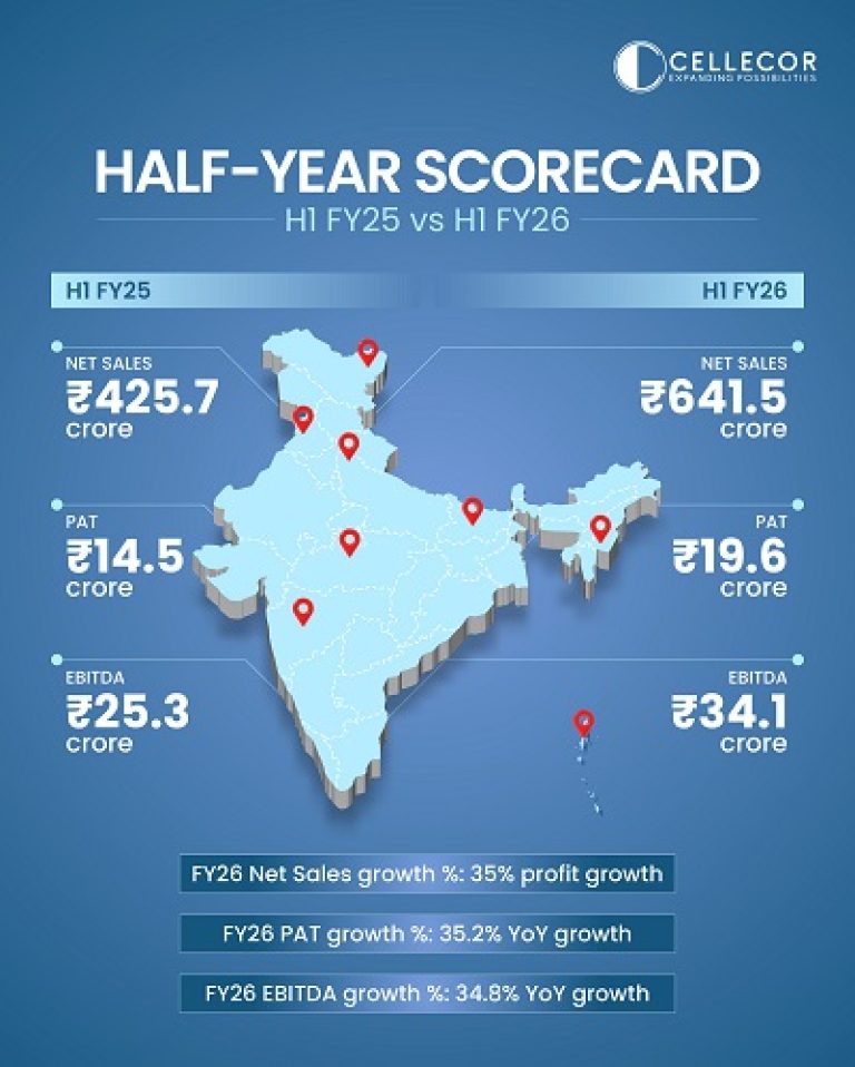 Cellecor Reports INR 641.5 Cr Net Sales and 35% Profit Growth in H1 FY25-26, Driven by Strong Consumer Demand November 7, 2025