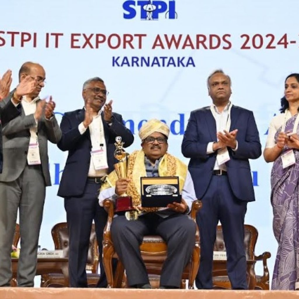 The Software Technology Parks of India (STPI) today felicitated Shri B.V. Naidu, Chairman, Karnataka Digital Economy Mission (KDEM), with the First STPI Commendation Award at the STPI Awards Ceremony held during Bengaluru Tech Summit (BTS) 2025 facilitated by Dr. Sanjay Tyagi, Jurisdictional Director, STPI. The recognition honours Shri Naidu’s decades-long leadership in building Karnataka’s global technology prominence and his sustained contributions to India’s IT, innovation, and digital economy landscape.