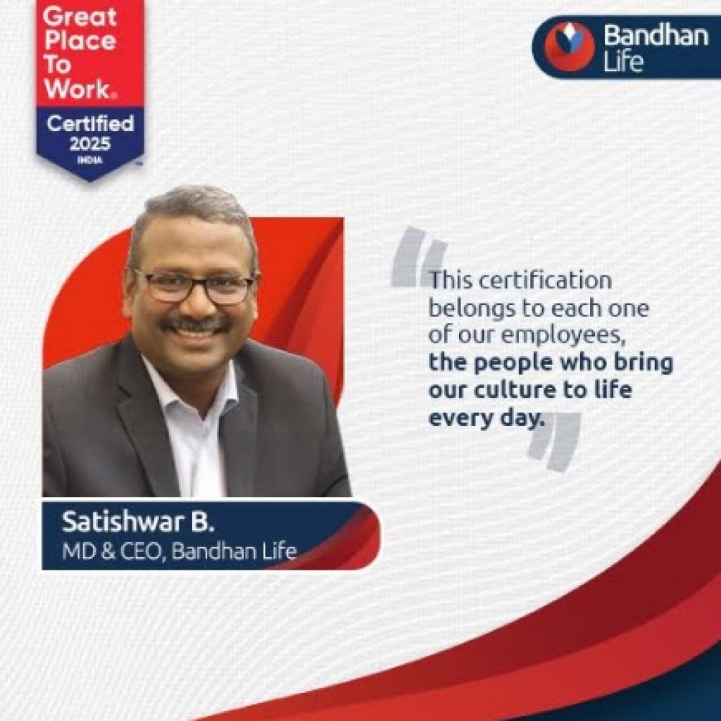 Bandhan Life Insurance is proud to announce that it has been officially certified as a Great Place to Work, reaffirming its commitment to building a workplace anchored in trust, collaboration, and outcome-oriented growth.