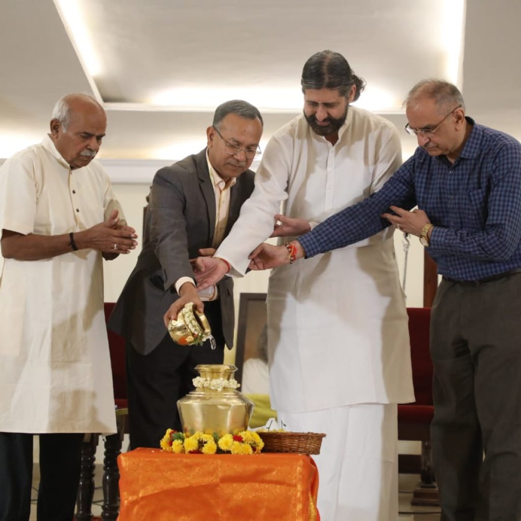 The event opened with the Jal Kalash Ceremony, where water from five sacred rivers – Kumudhvati, Arkavathi, Vrishabhavathi, Suvarnamukhi, and Palar – was sanctified and brought together. Students from the Vaidic Gurukul at the Center recited the Apah Sukta from the Rig Veda, invoking the sacredness and life-giving power of water. This moment symbolised the seamless blend of India’s spiritual ethos with modern environmental science.