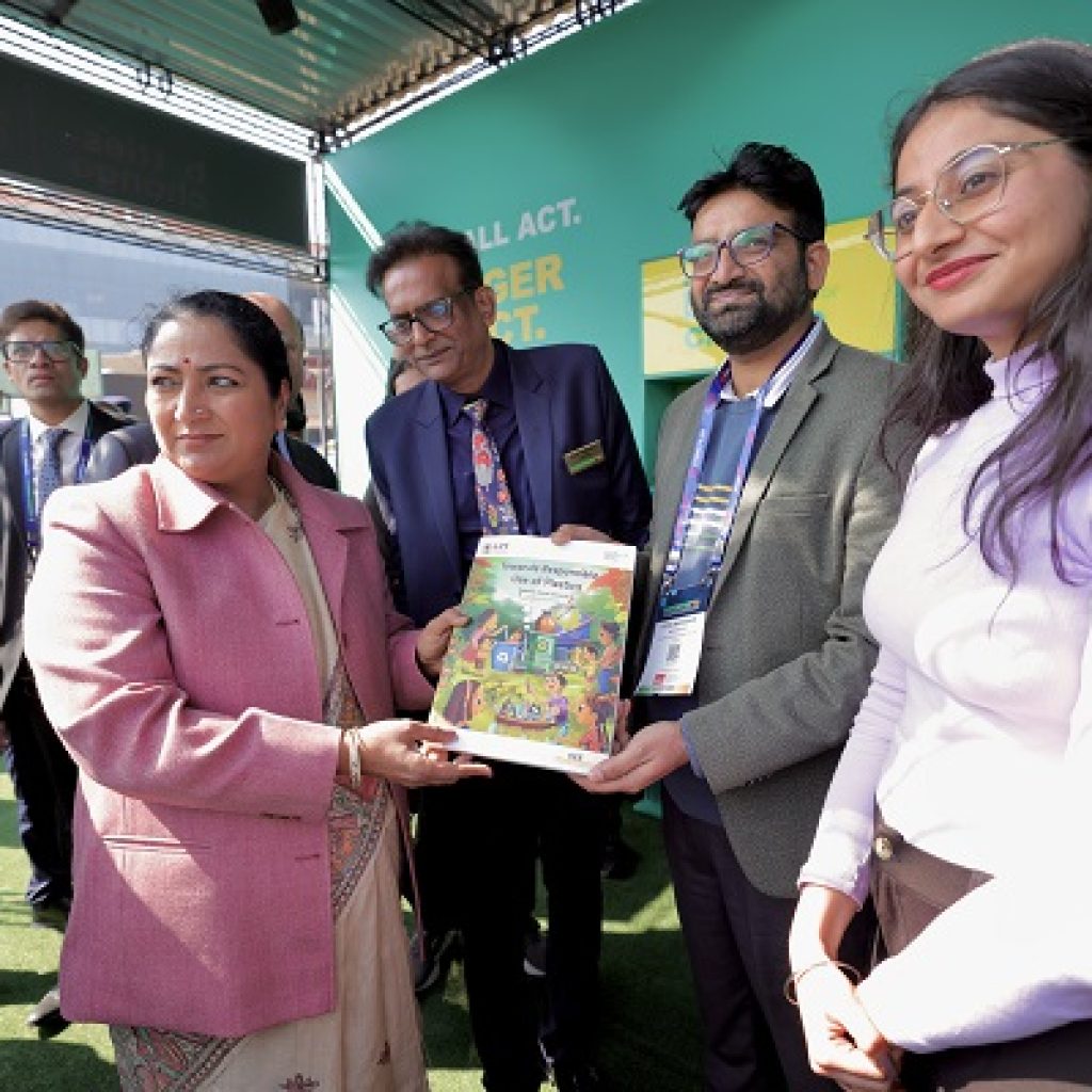Shri Chirag Paswan, Honourable Cabinet Minister of Food Processing Industries, Government of India, also visited the Bottles for Change stall and was presented with the recently launched comic book “Chhota Bheem and Vidya’s – Big Green Mission”, published by Bisleri International in collaboration with NBT, Government of India, Ministry of Education. The comic leverages engaging storytelling to educate children about waste segregation, recycling, and sustainable consumption habits.