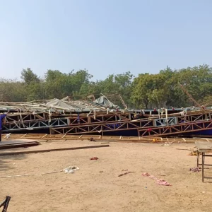 Today, a temporary building close to Jawaharlal Nehru Stadium in Delhi collapsed, injuring eight people. If there are any more people buried beneath the rubble,