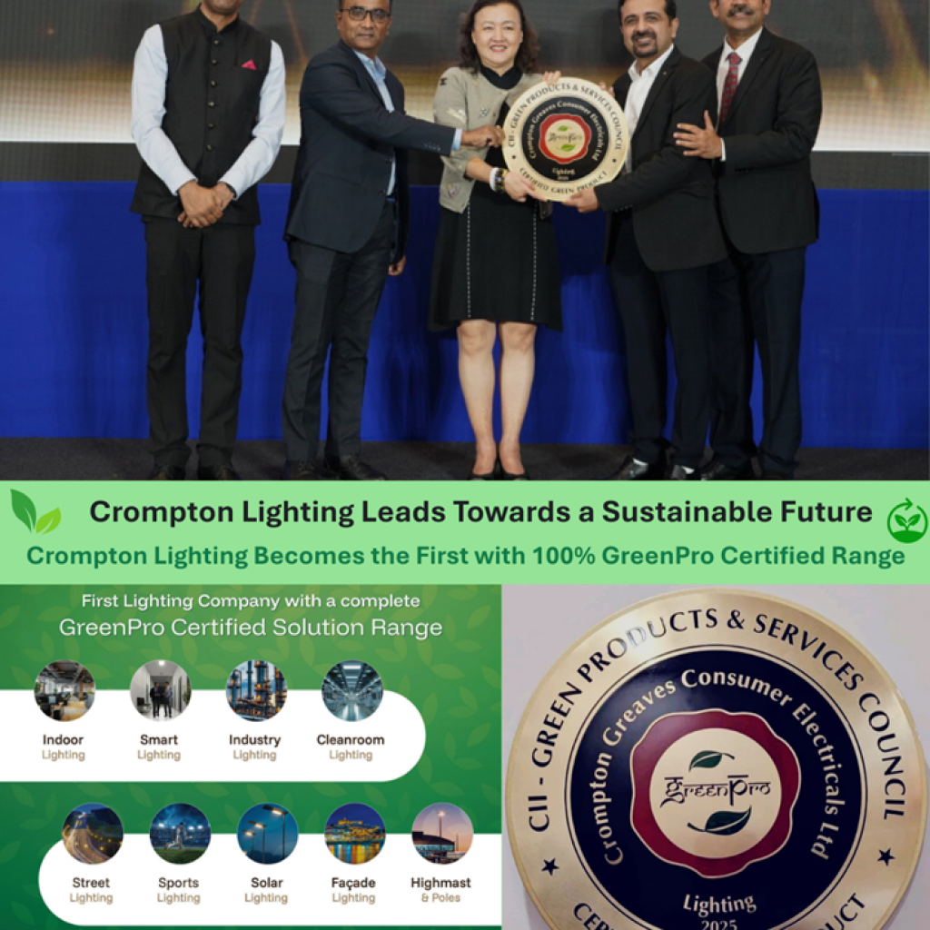 Commenting on the achievement, Mr Promeet Ghosh, MD & CEO, said: “At Crompton, sustainability is at the core of our innovation. We are proud to be the first lighting company in India to achieve a complete GreenPro Certified Solution Range. This recognition adds to our growing list of sustainability accolades, including the earlier certification for our ceiling fan model, and affirms our commitment to global sustainable development goals and responsible practices. It reinforces our dedication to delivering high-performance, reliable products while making a meaningful impact on people as well as the planet. Together, these milestones reflect Crompton’s journey toward building a greener and more sustainable future for India.”