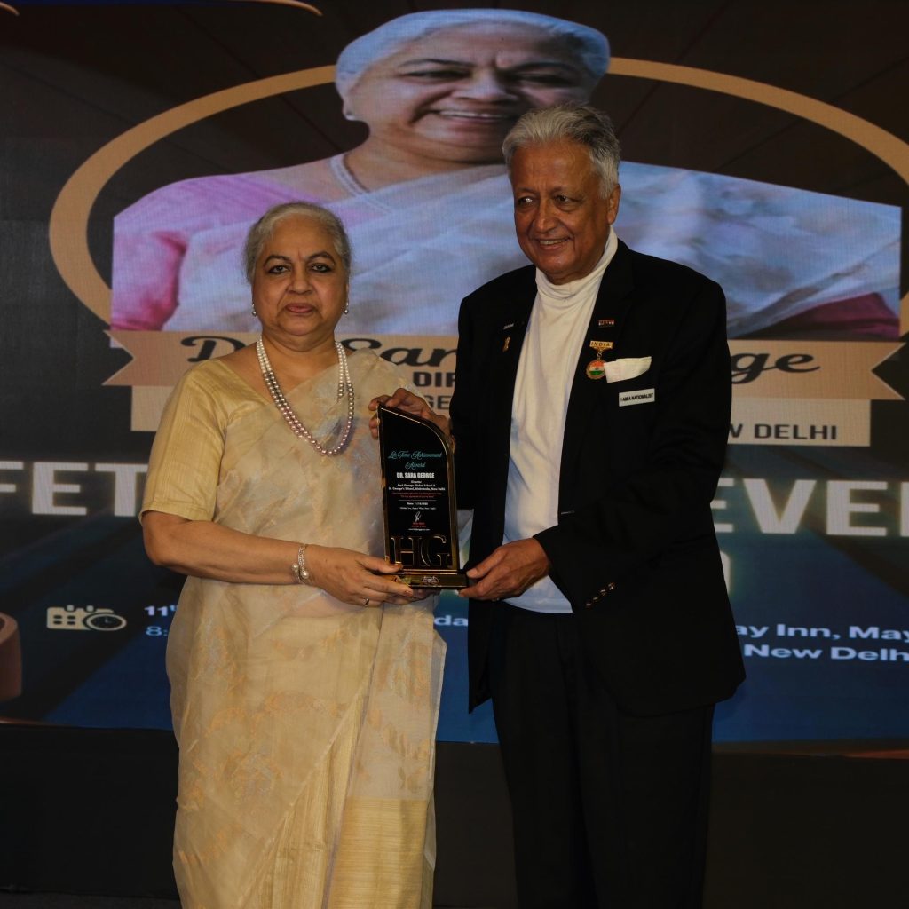 Dr. Sara George Muthoot, Director of St. George’s School and Paul George Global School, New Delhi has been honoured with the Lifetime Achievement Award by Helping Gurus. Helping Gurus is an organisation dedicated to transforming India’s K-12 education ecosystem through a network of over 10,000 schools. It recognises and supports individuals and institutions that are driving innovation, inclusion and excellence in education.