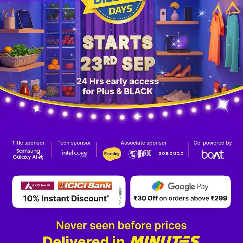 The Big Billion Days sale on Flipkart Minutes will go live with an unmatched festive assortment, operational 24 hours across cities for the entire duration of the event. Customers can look forward to blockbuster deals on the latest products and must-haves, all delivered in just 10 minutes. Tier 2+ markets such as Ambala, Guwahati, Jaipur, Lucknow, Kanpur, and Patna continue to be major growth drivers of festive adoption on Flipkart Minutes.