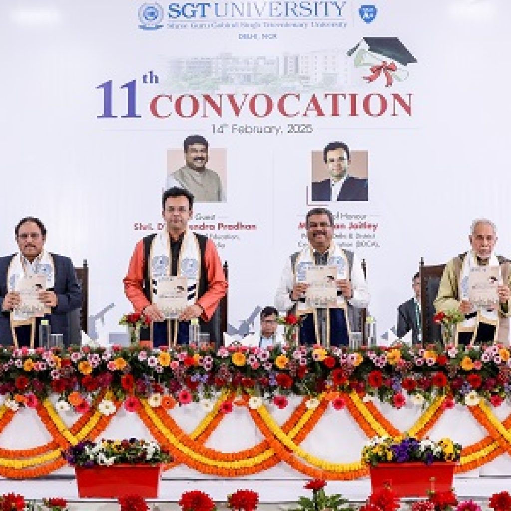 Shri Dharmendra Pradhan, Minister of Education, Government of India, recently attended the 11th convocation ceremony of SGT University. Addressing the august gathering at the event, the minister said, “Students from institutions like SGT University will have to develop global solutions in order for India to reach its goals“. The two-day convocation ceremony held on the 14th and 15th of February, 2025, witnessed the graduation of more than 2100 students, including 105 gold medallists, from 200-plus programs.