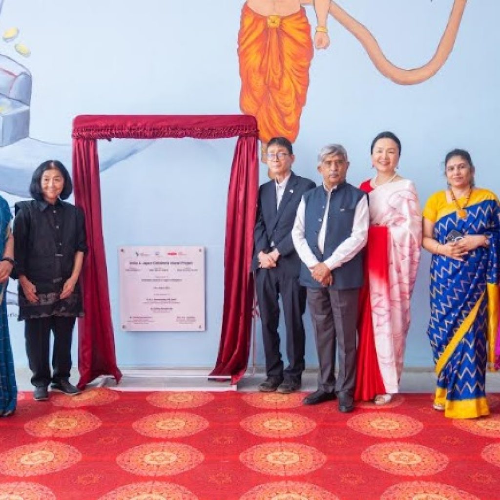 Teiko Nishimori has been traveling the world for over 45 years, leading large-scale mural projects that bring children together to celebrate themes of friendship, peace, and the connection between people, animals, and nature. Her unique process involves engaging children in discussions, listening to their ideas, and working together to transform blank walls into vibrant stories. This project at Ekya Schools marks her very first mural in India, making it an especially meaningful journey. Speaking about the project, Nishimori said, “Because of the friendship between Japanese and Indian students, we were able to finish this beautiful mural. I hope to continue this friendship and create more art together in the future.”