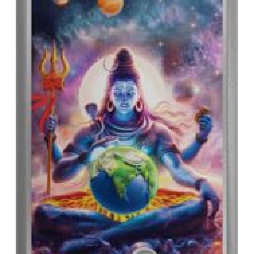 • The front features a majestic image of Lord Shiva in a meditative pose amidst the vast cosmos, gently holding planet Earth- symbolizing his guardianship and protection over life and the universe