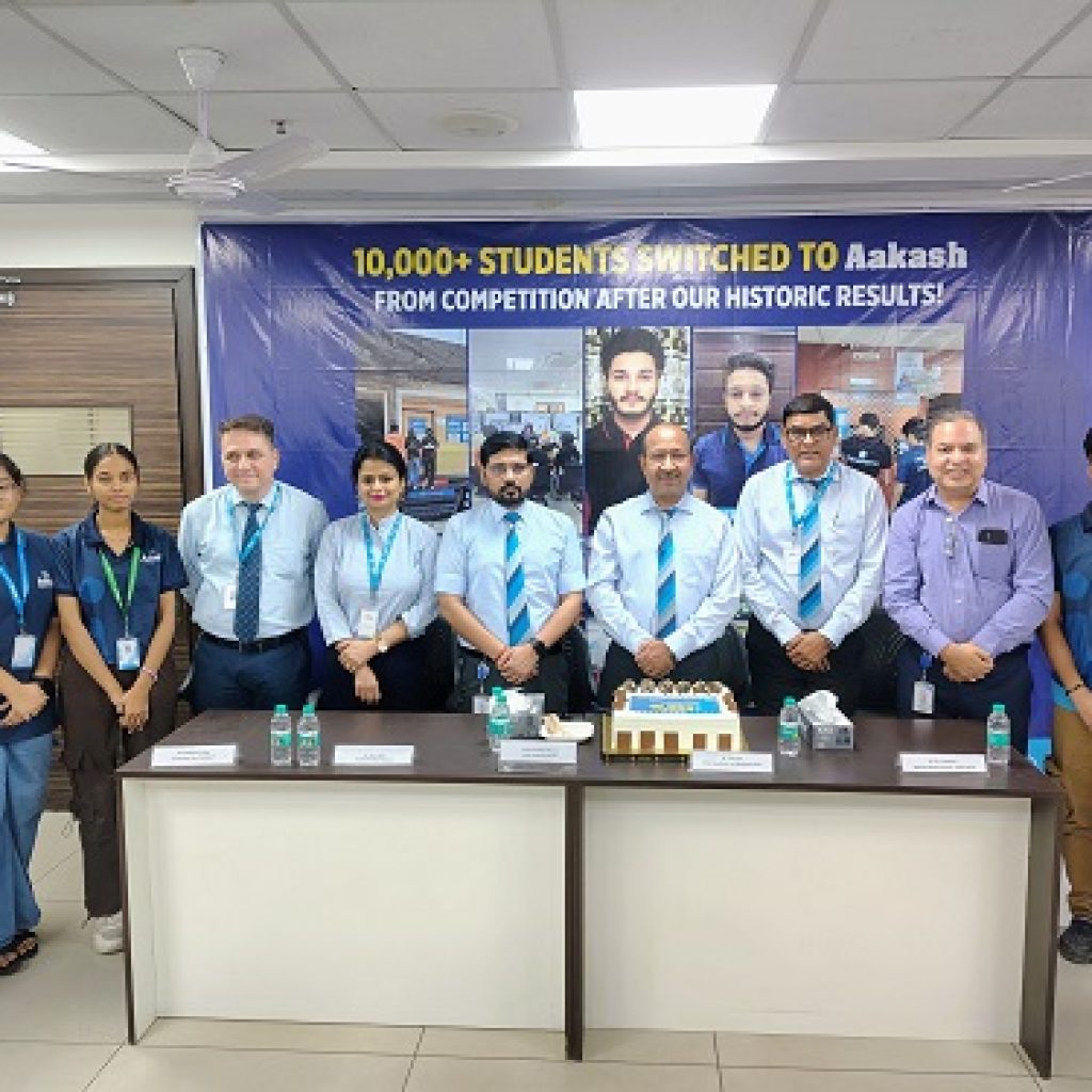 Aakash Institute marks the achievement of 10,000+ student transitions with a special cake-cutting ceremony, joined by faculty, staff, and students