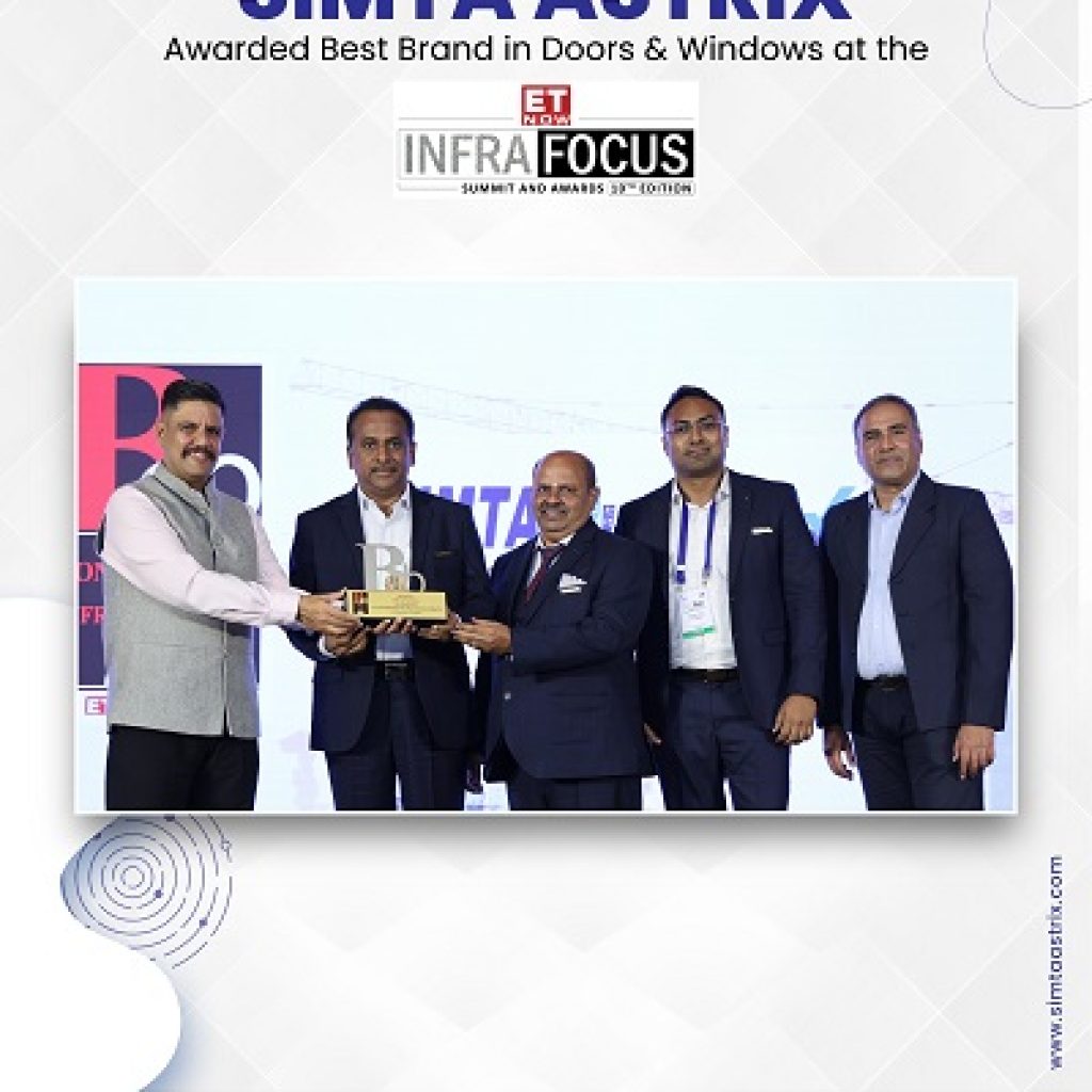 Simta Astrix has been honoured as the Best Brand in the Construction & Infrastructure Industry, in Doors & Windows at the ET Now InfraFocus Summit & Awards – 10th Edition, a prestigious platform that celebrates excellence and impact across India’s built environment. This recognition reaffirms how trust and consistency earn their place over time. For Simta Astrix, being named the best brand in doors and windows isn’t just an award; it’s a reminder to keep delivering dependable performance with thoughtful design. It tells how the company is moving in the right direction serving homeowners, architects, developers, and fabricators who look for quality that lasts and detail that matters.