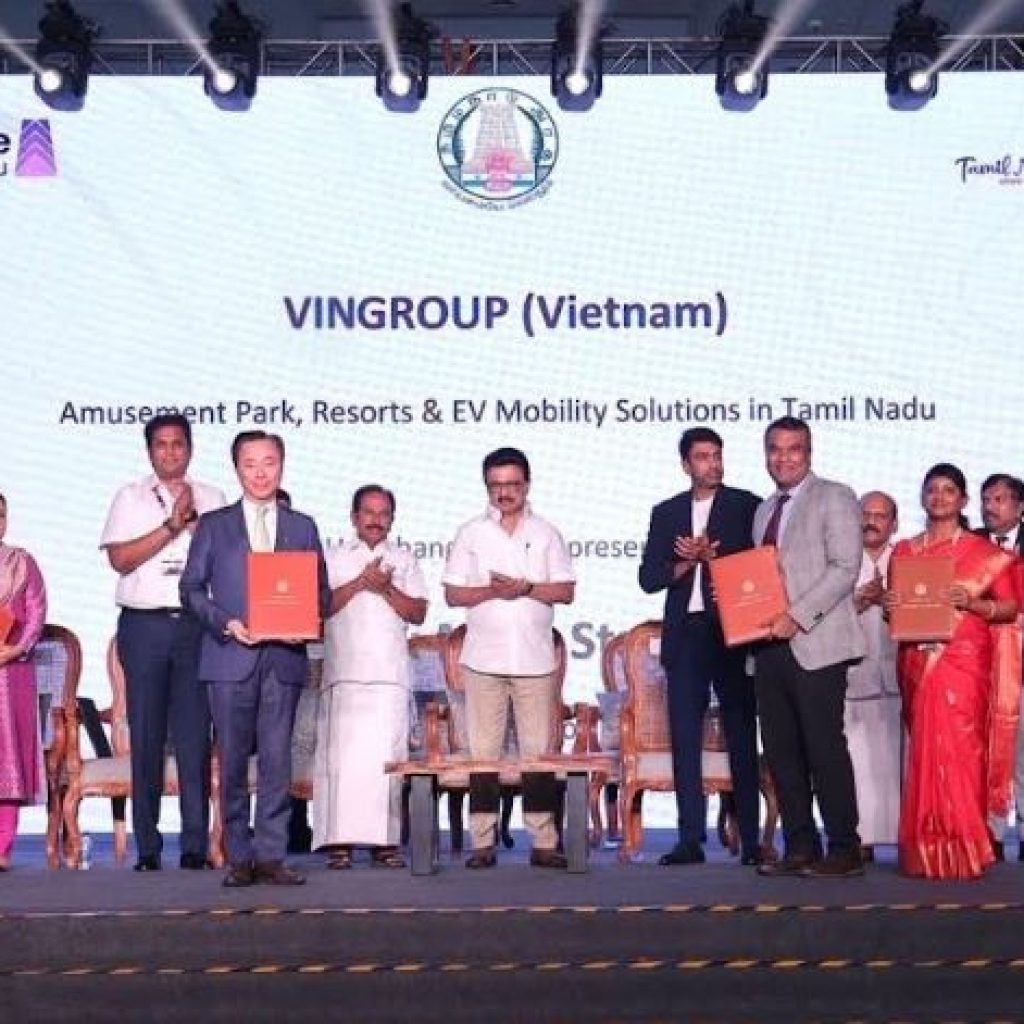 The ceremony was attended by Tamil Nadu Chief Minister Thiru. M.K. Stalin, Mr. Pham Sanh Chau, CEO of Vingroup Asia, along with senior officials from the Government of Tamil Nadu