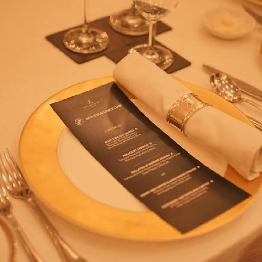 Curated menu for the BMW event set up at the Leela Palace Udaipur